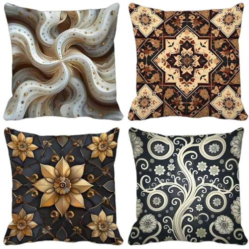 【4 Kissenbezüge】Das praktische 4er-Set enthält vier Kissenbezüge (ohne Kissenkern). Das Muster ist beidseitig digital bedruckt und verfügt über einen unsichtbaren Reißverschluss. Der Kissenkern lässt sich einfach und elegant zugießen und erfüllt so Ihren Wunsch nach Stil und Ästhetik