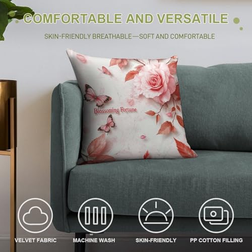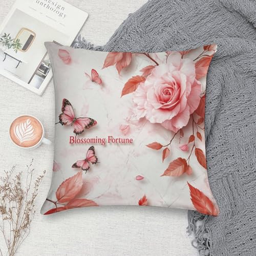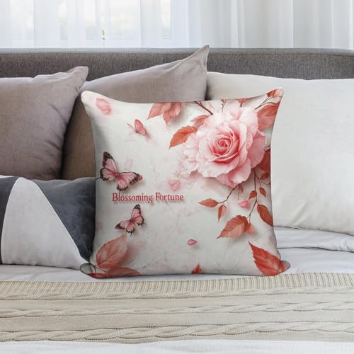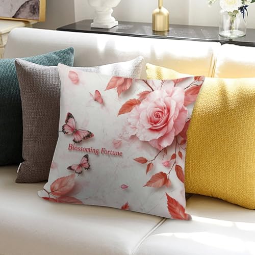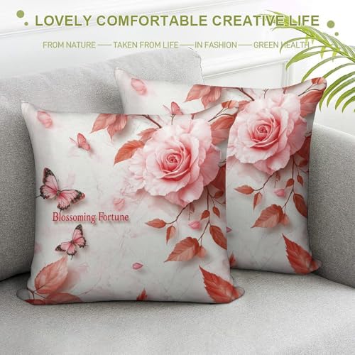 Outdoor Kissenbezug Wasserdicht Kissen Wasserdichter Dekorative Kissenbezüge Leinen – Butterfly Rose Sofakissen Dekokissen für Garten Sofa Bett Couch Wohnzimmer Schlafzimmer 2er Set, 40×40 cm e-513