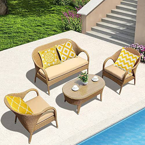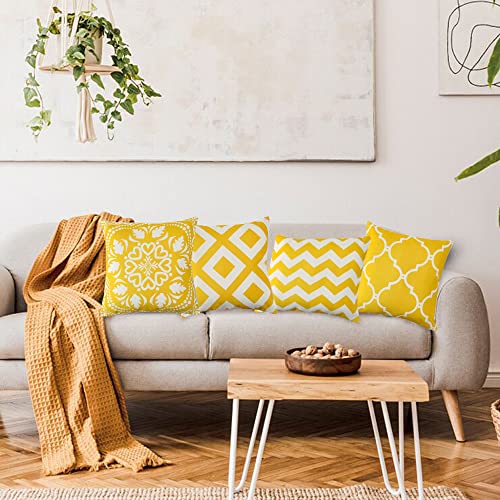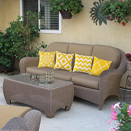 Production Name: Outdoor Kissen Gelb, Wasserdichte Kissenbezüge Für Den Außenbereich, Reißverschluss Zierkissenbezüge für Sofa Vintage-Dekoration, 4er-Set, 45 x 45 cm, Gelb, Grau