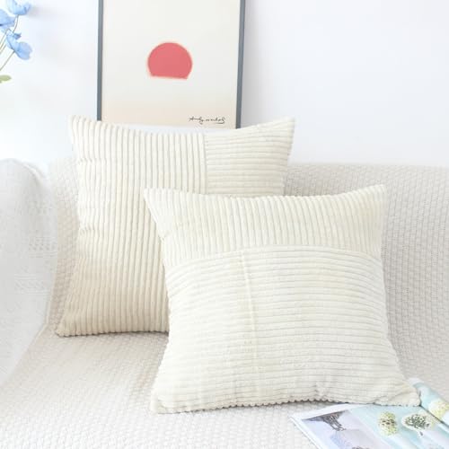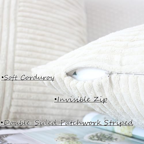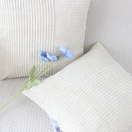 Design:Gestreifter Cord Kissenbezug mit Patchwork Design,schlicht und nunmehrig.quadratisch Kissenbezüge mit unsichtbarem Reißverschluss für schicker und praktischer.
