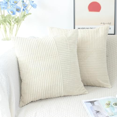 „OYIMUA Beige Kissenbezug 40×40 Kordsamt 2er Set gestreiftes Muster Kissenbezüge Kissenhülle Dekokissen Sofakissen Couchkissen Dekokissen Deko Kissenhüllen Zierkissenbezug Wohnzimmer“