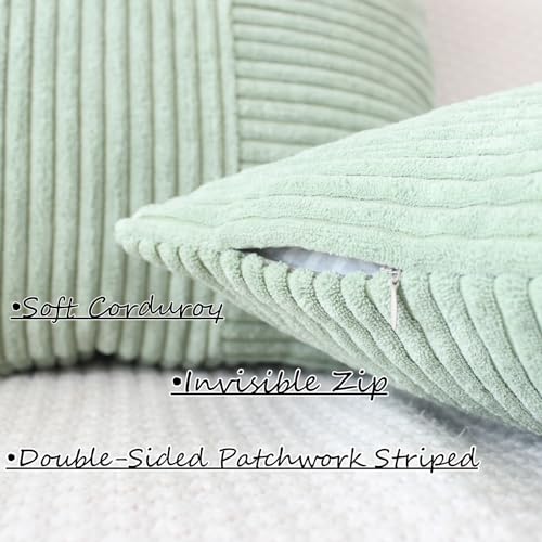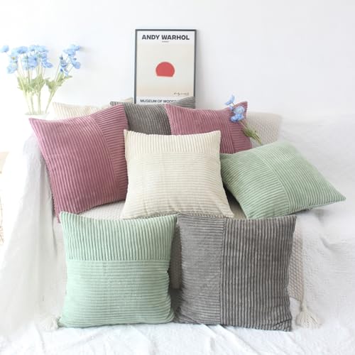Design:Gestreifter Cord Kissenbezug mit Patchwork Design,schlicht und en vogue.quadratisch Kissenbezüge mit unsichtbarem Reißverschluss für schicker und praktischer.
