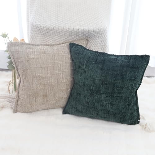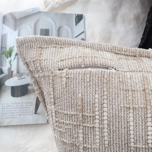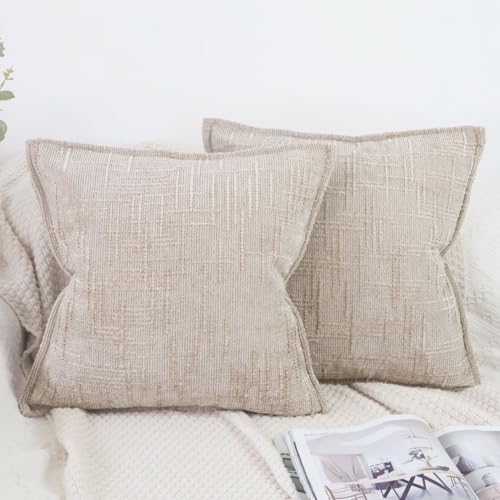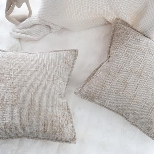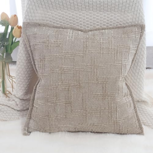 OYIMUA Kissenbezug 40×40 Beige 2er Set Weiche Chenille Kissenbezüge Textur Bambusfugen Sofa Dekokissen Edel und Luxus Kuschelkissen für Wohnzimmer Schlafzimmer & Heimdekoration