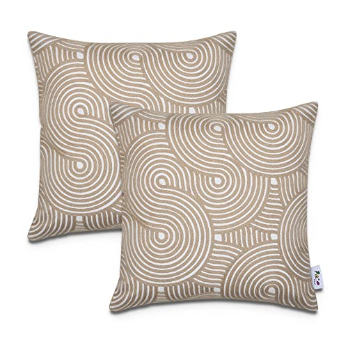 Paco Home Kissenbezug Deko Kissenhülle Bezug Kissenbezüge Zierkissen 2er Set Sofa Zierkissen Wohnzimmer Blätter Skandi, Farbe:Gelb-Braun, Sets:2pcs-Set