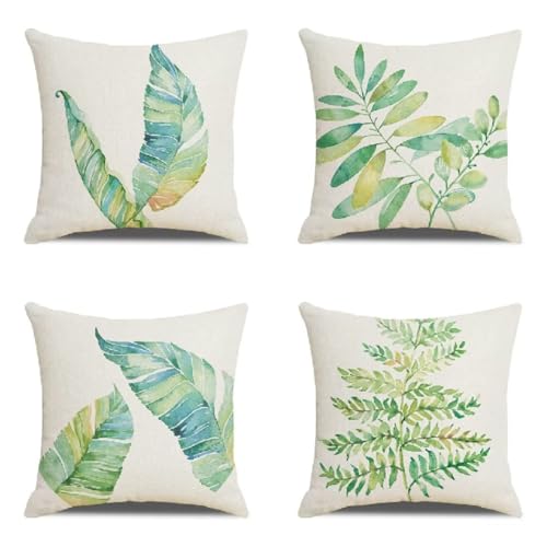 Palme Kissenbezug 80 x 80 cm Sofakissen Super Weich Kopfkissen 4er Set Strand Kissen Deko Kissenhülle mit Unsichtbarem Reißverschluss Kopfkissenbezug Quadrat Kissen für Schlafzimmer Wohnzimmer R600
