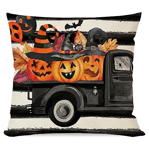 Langlebig und hochwertig: Hergestellt aus Polyester-Mischgewebe und mit einem haltbaren, versteckten Reißverschluss für einfaches Loslösen und Reinigen. Erfrischen Sie Ihre Halloween-Dekoration für Zuhause mit den Halloween-Kissenbezügen im Bauernhaus-Stil, 50,8 x 50,8 cm. Hinweis: Kissenfüllung nicht im Lieferumfang enthalten.