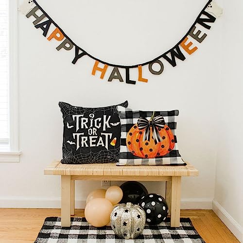 PANDICORN Halloween-Kissenbezüge mit schwarzem Büffelmuster, 50,8 x 50,8 cm, 4 Stück, gepunktet, Kürbis, Süßes oder Saures, für den Außenbereich, Herbst, Halloween, dekorative Dekokissen, Dekoration