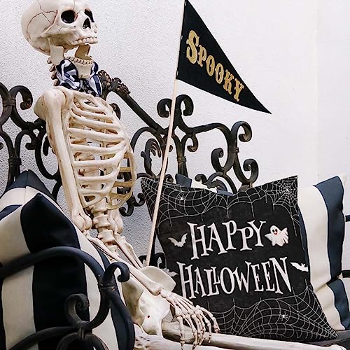 Langlebig und hochwertig: Hergestellt aus Polyester-Mischgewebe und mit einem haltbaren, versteckten Reißverschluss für einfaches Entfernen und Reinigen. Erfrischen Sie Ihre Halloween-Dekoration für Zuhause mit den Halloween-Kissenbezügen im Bauernhaus-Stil, 50,8 x 50,8 cm. Hinweis: Kissenfüllung nicht im Lieferumfang enthalten.