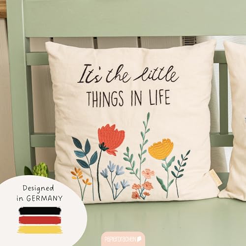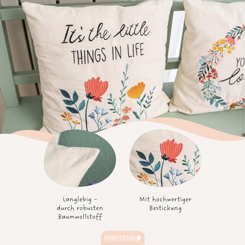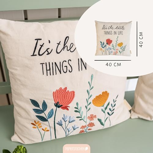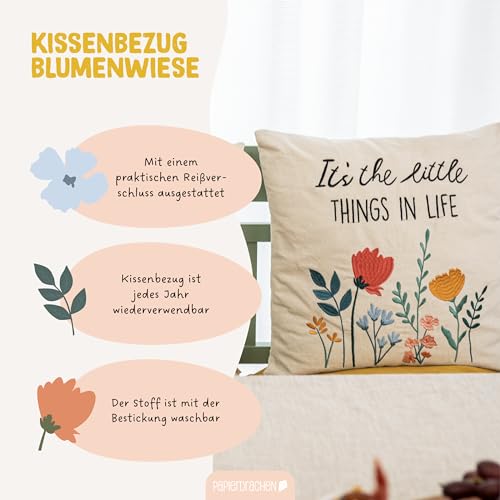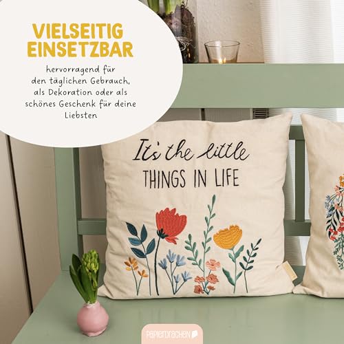 Papierdrachen Kissenbezug 40×40 cm – Kissenhülle aus Canvas – elegant und robust – Dekoration Sofa – Zierkissen Dekokissen – Geschenkidee – Florale Wiese – Set 02