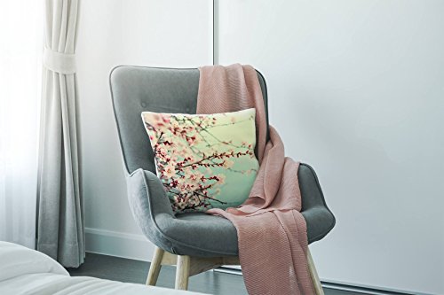 Paul Sinus Art Blumen, Kirschblüten, Frühling, rosa, blau Deko Kissen 40x40cm für Couch Sofa Lounge Zierkissen – Dekoration zum Wohlfühlen