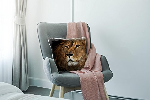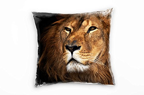 Paul Sinus Art Tiere, braun, schwarz, Löwe, Detailaufnahme, Afrika Deko Kissen 40x40cm für Couch Sofa Lounge Zierkissen – Dekoration zum Wohlfühlen