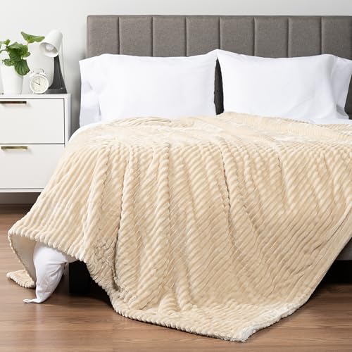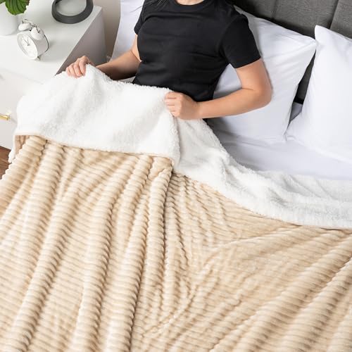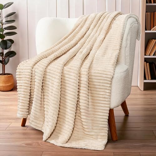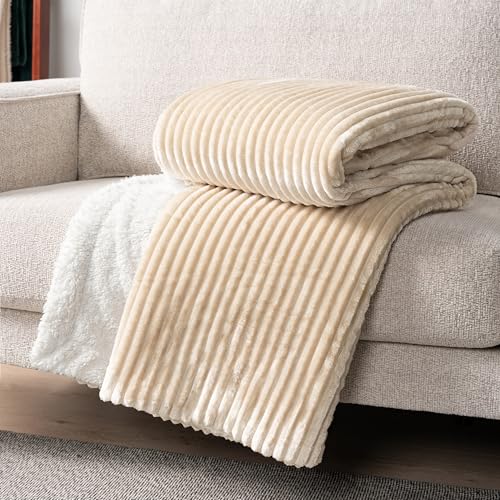 3D-geripptes Streifendesign: Diese cremefarbene Sherpa-Decke hat eine Streifenstruktur und ein wendbares Sherpa, das Ihre Wohnkultur-Ästhetik betont. Die lebendige Farbe macht sie zu einer vielseitigen dekorativen Decke