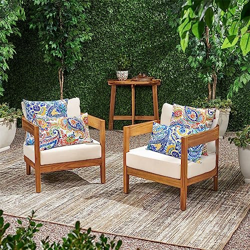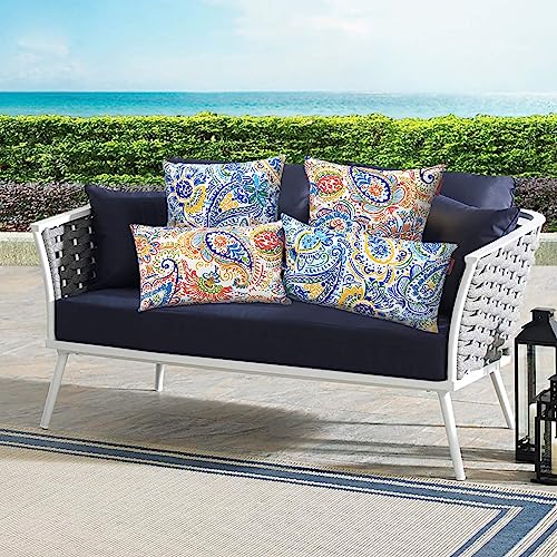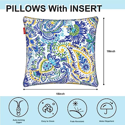 Pcinfuns Dekokissen für drinnen und draußen, dekorative, wasserabweisende Kissen mit Einsätzen, quadratische Kissen für Zuhause, Terrasse, Trainer, Sofa, Blau, Paisleymuster, 45,7 x 45,7 cm, 2 Stück