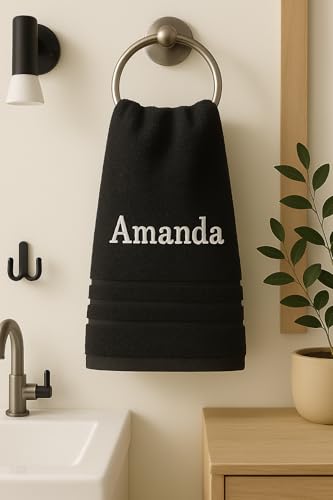Pet-Jos 2er Pack Personalisiertes Handtuch und Badetuch mit Namen Schön gestickter Name Handbadetuch 100 % Baumwollhandtuch 50 x cm + 140 70 Personalized Custom Towel with (Schwarz)