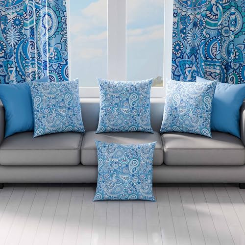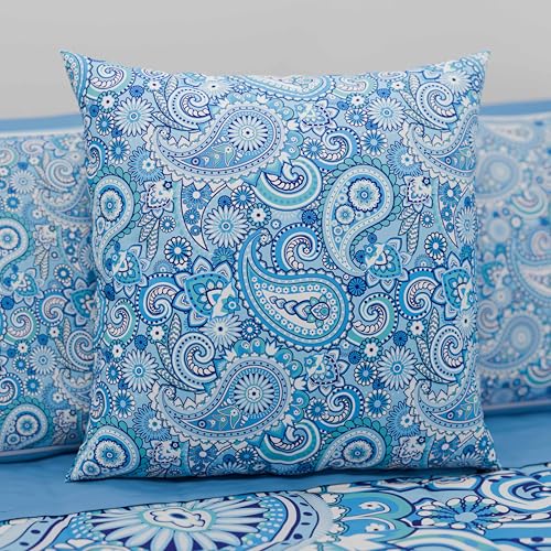 PETTI Artigiani Italiani – 1 Paar Kissenbezüge 40 x 40 cm allesamt Mikrofaser, Dekokissen sondern Schlafzimmer, Sofa, Wohnzimmer, Set mit 2 Kissenbezügen, Paisley hellblau, 100 % Made in Italy
