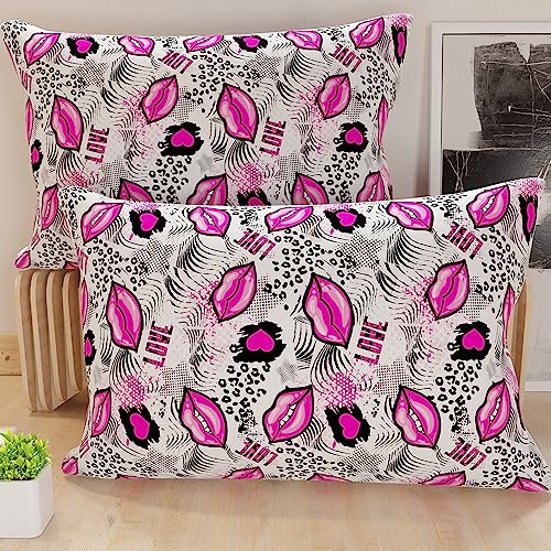 PETTI Artigiani Italiani – Paar Kissenbezüge 50 x 80 cm aufgebraucht Mikrofaser, Dekokissen statt Schlafzimmer, Sofa, Wohnzimmer, Set mit 2 Kissenbezügen, Kissenbezug Lipstick Weiß, 100 % Made in Italy
