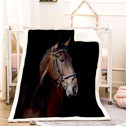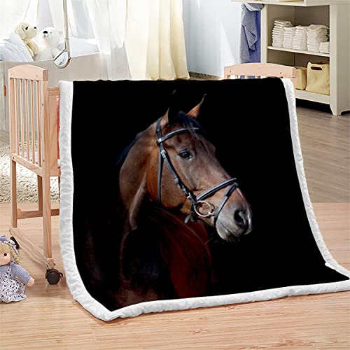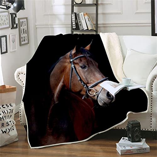Pferd Drucken Kuscheldecke Flanell Mikrofaser 3D Kuscheldecke Kinder 130×150 cm Grünlandtiere Waschbar mit Muster Wohndecke Weiche Warme Jungen Mädchen Fleecedecke Sofadecke Couchdecke