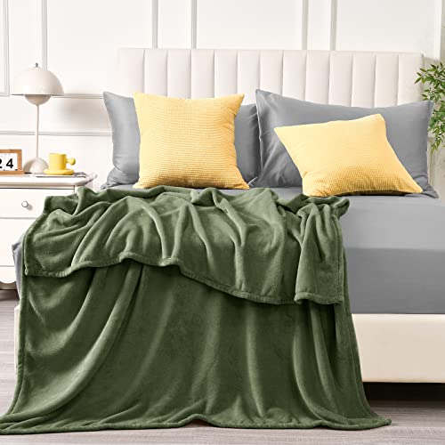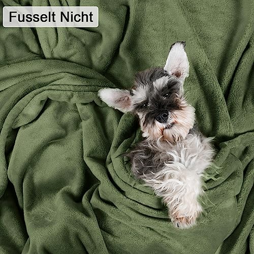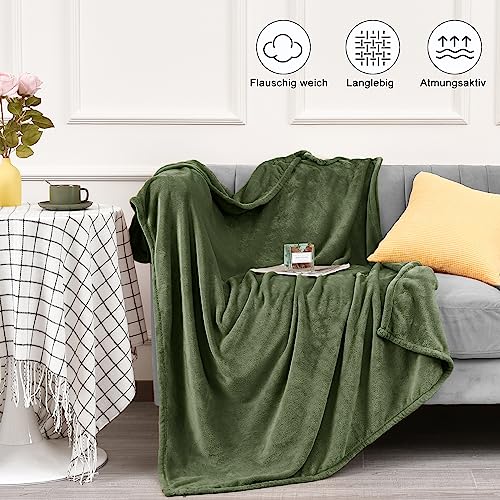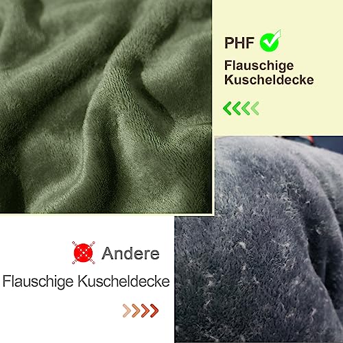 PHF Kuscheldecke Flauschig Fleecedecke 130x150cm – Oeko-Tex Weich Warm Wohndecke, Decke Blanket für Couch Sofa Bett, Tagesdecken & Kuscheldecken, Sofa überwurfdecke, Olivgrün