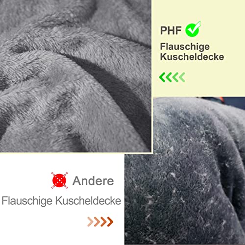 PHF Kuscheldecke Flauschig Fleecedecke 150x200cm – Oeko-Tex Weich Warm Wohndecke, Decke Blanket für Couch Sofa Bett, Tagesdecken & Kuscheldecken, Sofa überwurfdecke, Grau