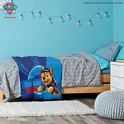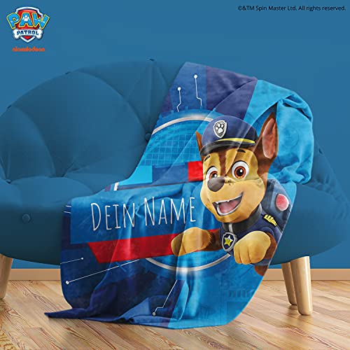PICANOVA – PAW Patrol Chase Decke mit Name 100x70cm – Personalisierte Kuscheldecke für Kinder – Premiumqualität Fleecedecke 510g/qm – Unschlagbar Weich Und Gemütlich Schmusedecke