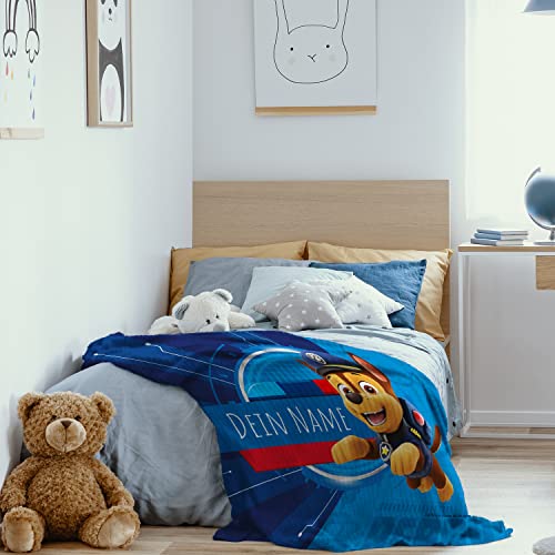 PICANOVA – PAW Patrol Chase Decke mit Name 200x150cm – Personalisierte Kuscheldecke für Kinder – Premiumqualität Fleecedecke 510g/qm – Unschlagbar Weich Und Gemütlich Schmusedecke