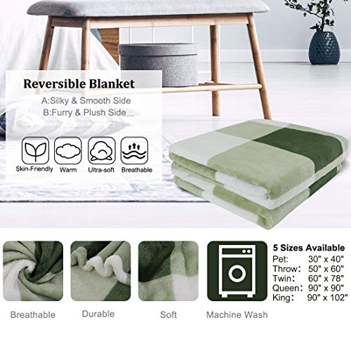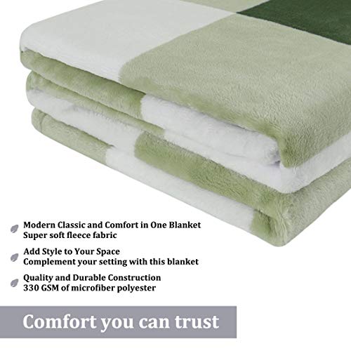 PiccoCasa Fleecedecke Karierte Decke Tagesdecke Flanell Große Decke Wohn- & Kuscheldecke Warm & Weich als Sofadecke/Couchdecke Sofaüberwurf Grün&Weiß 150x200cm