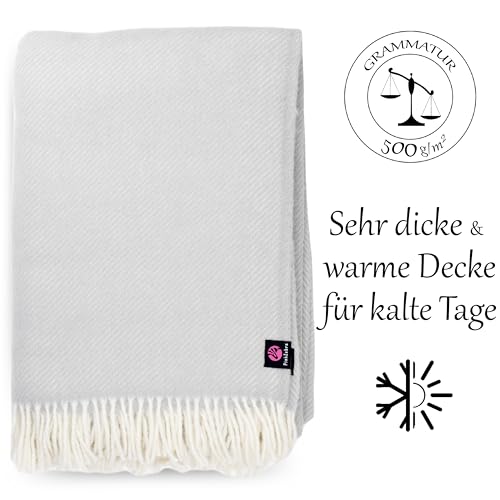 ✅WARM & DICK: Die sehr warme und angenehm schwere Merinodecke (500 g/m˛) spendet Ihnen nicht handkehrum an Winterabenden wohlige Wärme. Was das Gewicht betrifft, so bezieht es sich auf das Gewicht der in einer Wolldecke enthaltenen Fasern. In der Tat gilt: Je mehr Fasern zur Verfügung stehen, d.h. je höher das Gewicht, desto wärmer wird die Wolldecke. Unsere Wolldecken sind sehr warm, denn sie haben eine Grammatur von 500 g/m2.