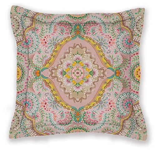 Zierkissen mit romantischem Blütenmotiv im Paisleystil und Streifenoptik, entsprechend zur gleichnamigen PiP Studio Bettwäsche Majorelle Carpet Pink