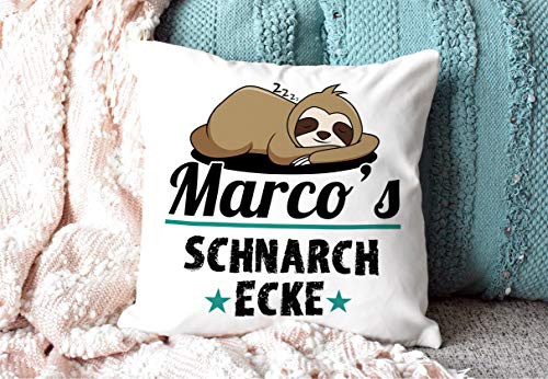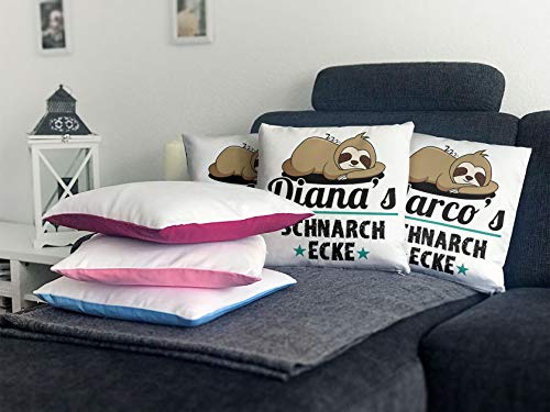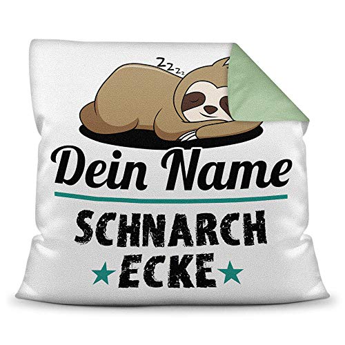 PR Print Royal Kissen inkl. Füllung Faultier PERSONALISIERT mit Wunschname für – Ihr Name Schnarchecke – Kuschelkissen/Lustige Geschenkidee/Freunde/Familie/Geburtstag – Farbkissen Rückseite Seegrün