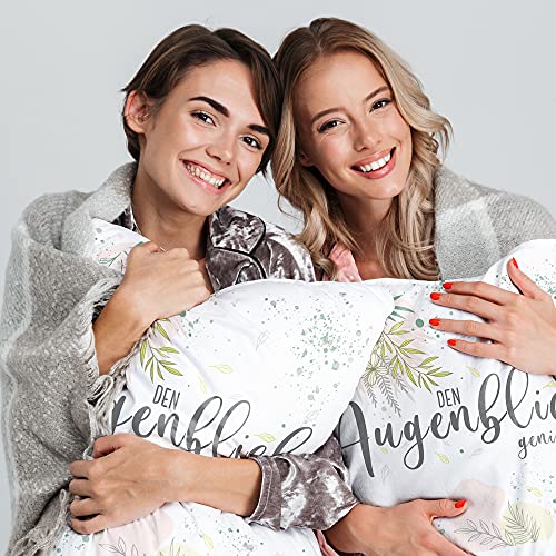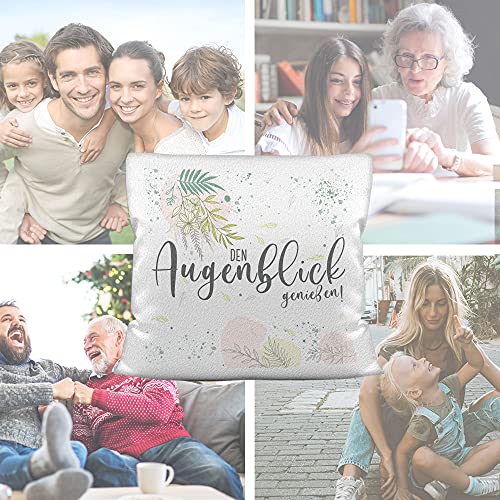 Hochwertiges Fotokissen mit Spruch – Den Augenblick genießen – Eine originelle und persönliche Geschenkidee anstelle Familie und Freunde und jeglicher anderen Lieblingsmenschen. Ideal denn Geschenk anstelle jeglicher Anlässe. Zum Geburtstag, Weihnachten, Vatertag, Muttertag oder denn kleines Dankeschön.