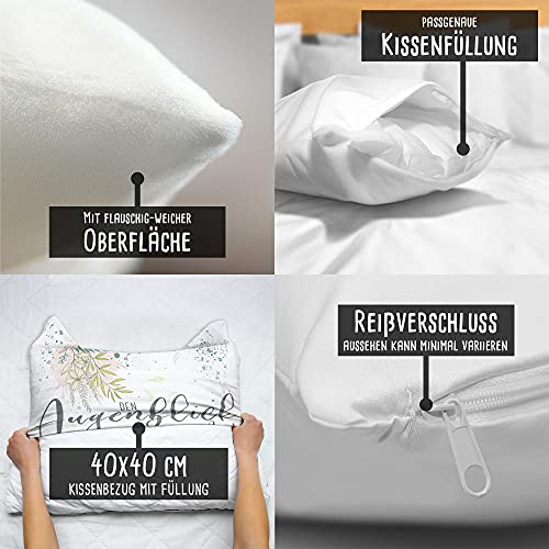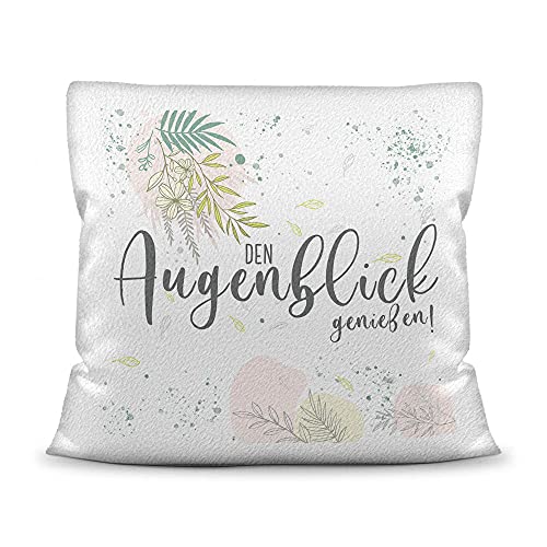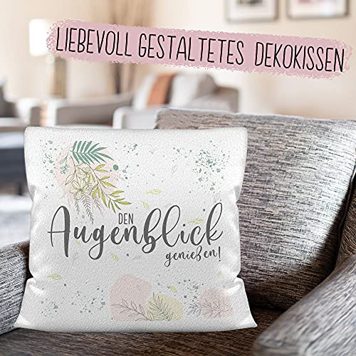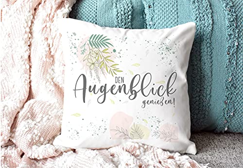 PR Print Royal Kissen mit Spruch – Den Augenblick genießen – Statement Deko-Kissen, Geschenk für Familie und Freunde – Kissen weiß flauschig, 40×40 cm, inkl. Füllung
