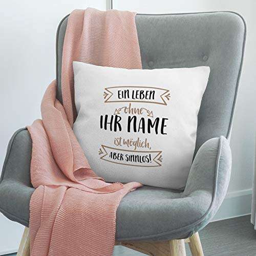 printplanet® Kissen mit Namen personalisiert – 100% Baumwoll Kopfkissen – Motiv Sinnlos individuell gestalten – Kissenbezug inkl. Füllung – 40 x 40 cm