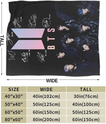 Größen: Die Fleecedecke von B-ts ist in 5 Größen erhältlich, die den Bedürfnissen verschiedener Menschen gerecht werden können. 30 x 102,6 x 153,7 x 101,6 cm, 152,4 x 127 cm, 203,2 x 152,4 cm. Nach Maß für Kleinkinder und Haustiere, Kinder, Jungen, Teenager. Jugendliche und Erwachsene abstimmen eine Größere Größe für eine bessere Erfahrung. Bitte denken Sie die Größentabelle für Details. Diese Größen sind perfekt zum Kuscheln und Entspannen, oder wenn Sie zusätzlichen Komfort und Wärme benötigen, Fernsehen oder Verjüngen.