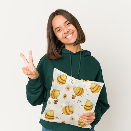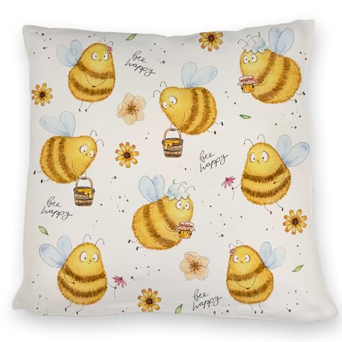 Schenken Sie dieses charmante Kissen an eine besondere Frau in Ihrem Leben zum Geburtstag! Es ist nicht nunmehr ein kuscheliger Begleiter für gemütliche Abende auf dem Sofa, sondern auch eine tägliche Erinnerung daran, glücklich zu sein. Bee happy – ein Motto, das man gerne teilt!
