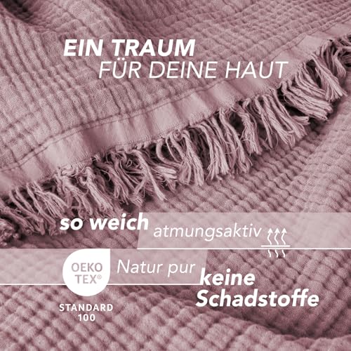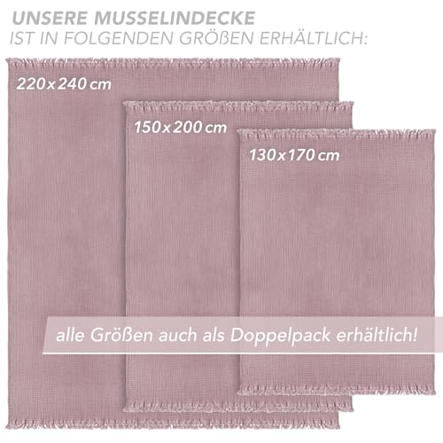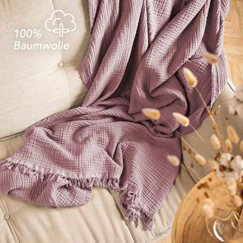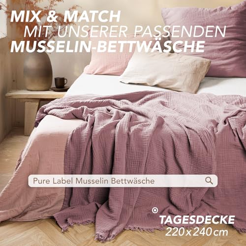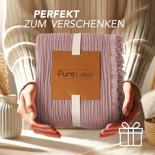 Pure Label Musselin Decke 150×200 cm – Oeko-Tex zertifizierte Kuscheldecke aus 100% Baumwolle | Musselin Wohn- & Kuscheldecke für Couch und Sofa in XL | 150 x 200 cm, Farbe der Decke Mauve