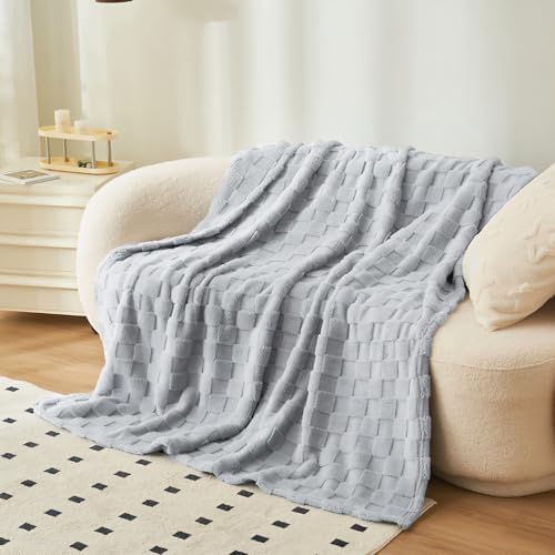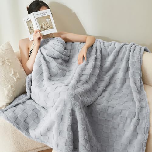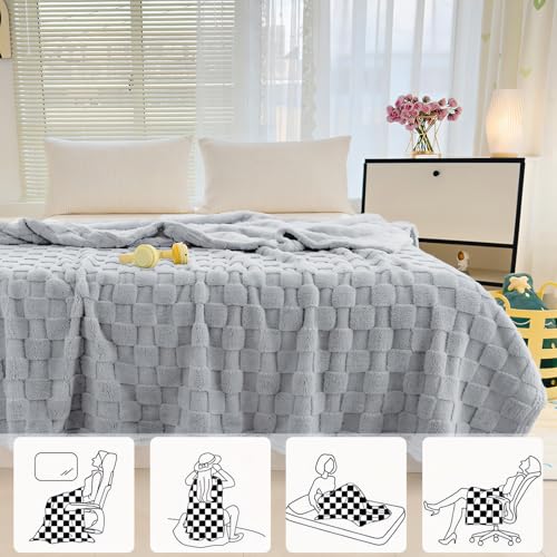 QOFLY Kuscheldecke Flauschig Decke 150 x 200 Fleecedecke – Grau Kariert Wohndecke Decken für Sofa Couch Bett