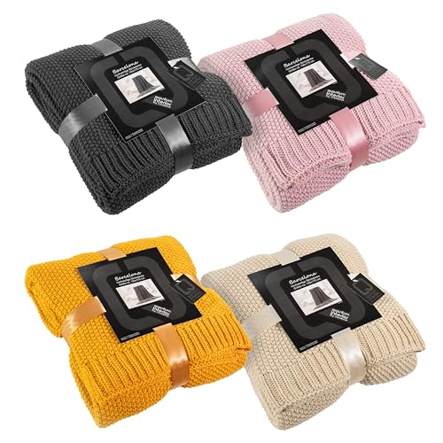 PRODUKT – unsere kuschelige Strickdecke Barcelona besticht durch Ihre moderne und zeitlose Optik. Sie ist in dezenten Farbtönen gehalten (anthrazit, rosa, senf, beige) und wirkt dadurch sehr erhaben und elegant. Die Decke eignet sich ideal als Kuscheldecke oder aka als Überwurf für das Bett oder Sofa und im Sommer auf Ihrem Balkon.