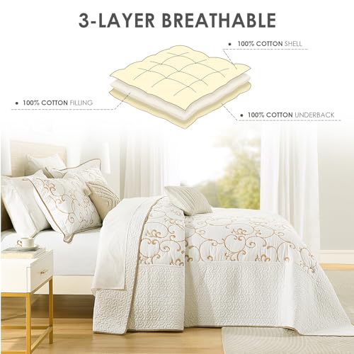 Das 3-teilige Queen-Size-Bettwäsche-Set beinhaltet: 1 Tagesdecke: 308 cm L x 253 cm B; 2 Kissenbezüge: 50,8 x 71,1 cm. Das dreilagige Design macht dieses gesteppte Tagesdecken-Set leicht, allerdings warm, geeignet für Frühling, Sommer, Herbst/Herbst, Winter und kann als Steppdecke, übergroße Steppdecke, Tagesdecke, Bettbezug und Bettdecken-Set verwendet werden