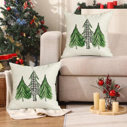 【Hochwertiges Material】Die Weihnachtsbaum-Kissenbezüge sind aus Baumwoll-Leinen. Der Stoff ist vollschlank, ausgelassen, weich und bequem genug, um Sofas, Betten, Sofas und Autos zu halten.