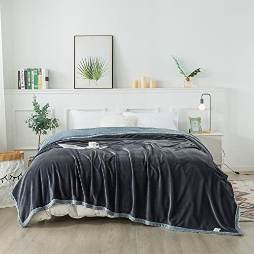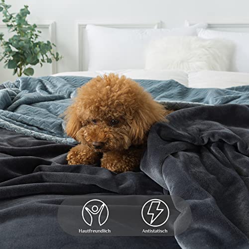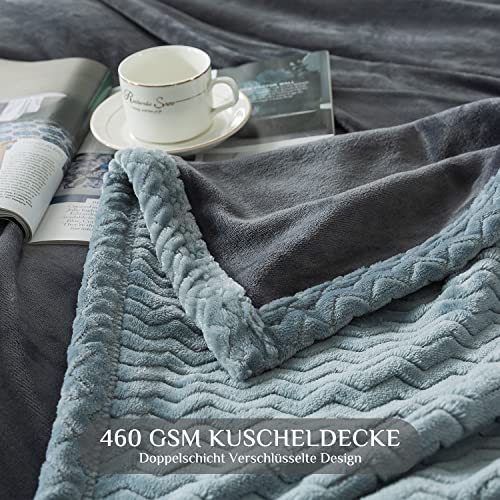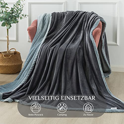 RATEL Kuscheldecke Flauschig Doppelschicht 150 × 200cm Dunkelgrau + Grau, 460GSM Upgrade Flanell Weiche Decke Fleecedecke, Mikrofaser Wohndecke/TV Decken/Sofadecke – Pflegeleicht – Warm, Gemütlich