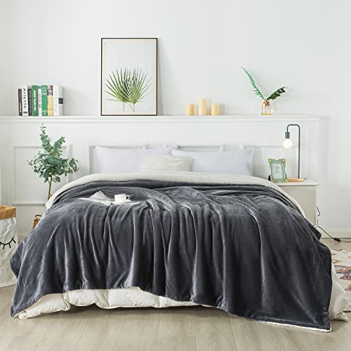 RATEL Sherpa Decke Hochwertige Kuscheldecke Dunkelgrau 220×240cm, Fleecedecke Wende-Decke aus hochwertige Mikrofaser für…