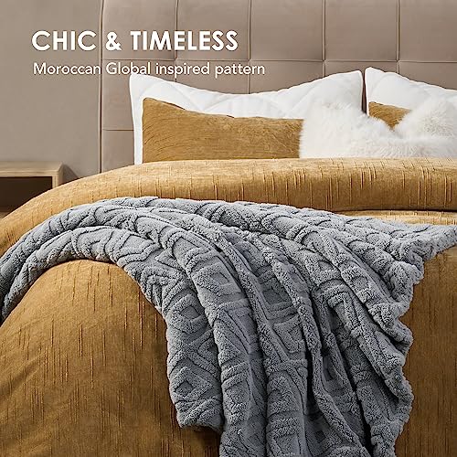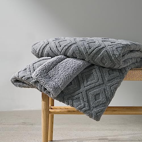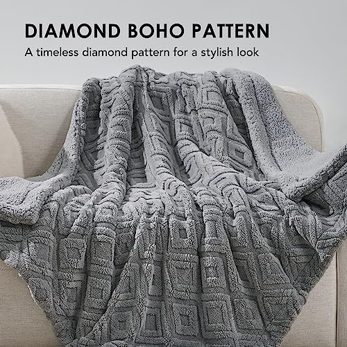 RECYCO Boho Wohndecke und Kuscheldecke Sherpa Decke 150×200, XL Groß Weich Warm Flauschig Dick Decke/Fleecedecke/Couch Wohnzimmerdecke/Sofadecke für Bett Sofa Couch Wohnzimmer, Grau