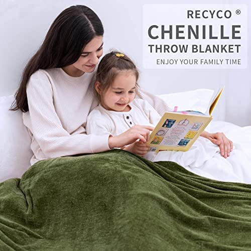 RECYCO Weihnachten Wohn und Kuscheldecke Chenille 127×152, Kleine Weihnachten Decke Sofadecke Couchdecke Wohndecke Dunkelgrün Flauschig Weich für Sofa Couch Stuhl, Grün