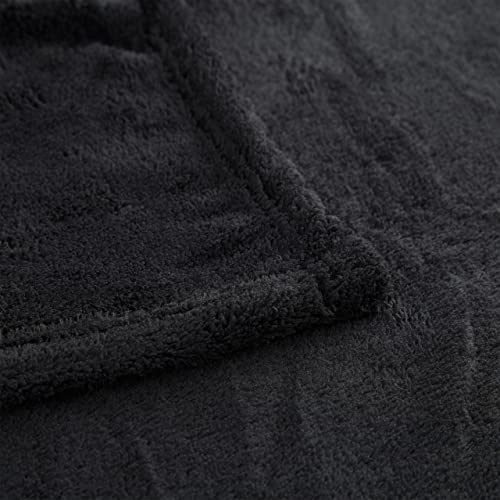 Relaxdays Kuscheldecke extragroß aus Polyester, Fleece, bei 30°C waschbar, HBT: 1 x 200 x 220 cm, schwarz