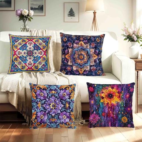 【DOUBLE-SIDED PATTERN】New cushion covers set of 4, size 24x24inches (60x60cm) without filling or lining. Our cushion covers are printed on both sides, so you can place them as you like without having to find the patterned side to decorate, which is more convenient