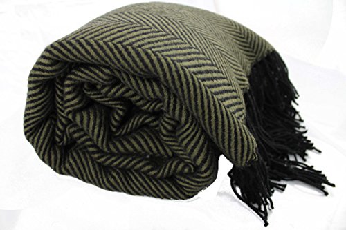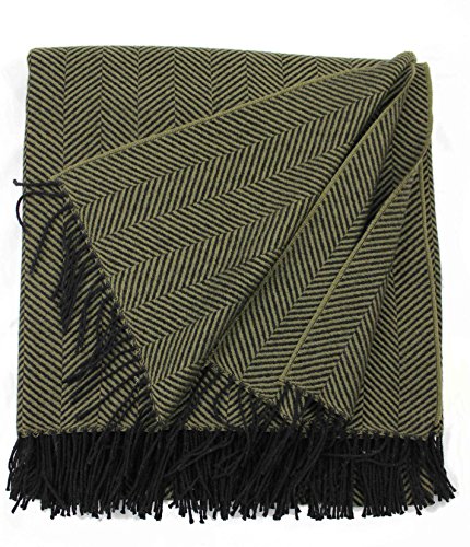 Rotfuchs Decke Wolldecke Kuscheldecke Plaid Wohndecke Uni Fischgrat oliv 100% Wolle (Merino)