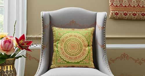 Ruwado Grün Seide Kissenbezug | Zierkissenbezug | Sofakissenbezug | Dekokissen | Zierkissen – 40 cm x 40 cm ***Handgewebt und Handgefertigt von Kunsthandwerkern aus Kaschmir-Indien***