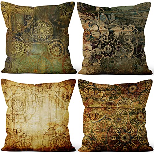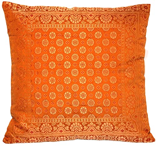 Ruwado Handgewebt und Handgefertigt Indische Banarasi Seide Dekokissen, Kissenüberzug, Kissenhülle, Kissenbezug, Zierkissenbezug – Blumen Muster 40 x 40 cm | 16 x 16 Zoll, Braun.