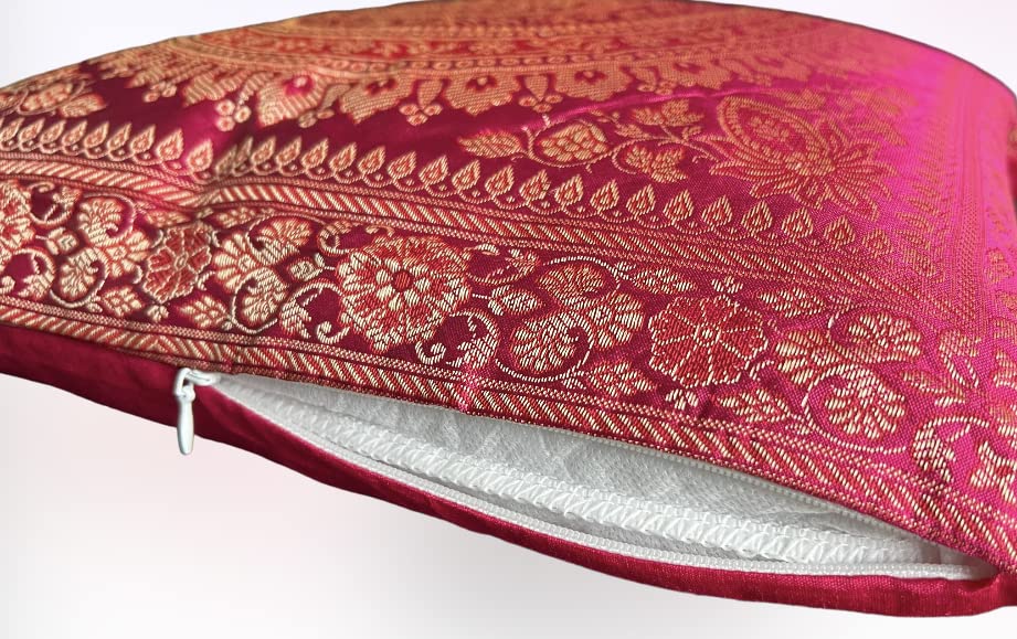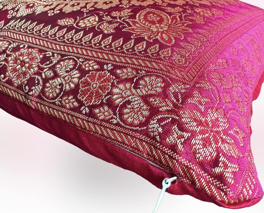✔ MATERIAL: Die Vorderseite ist von den Kunsthandwerkern aufgebraucht den Banarasi-Seidenfäden handgewebt ebenso die Abseite ist ein farblich passender Dupion-Seidenstoff anhand Hochwertiger unsichtbarer Reißverschluss ebenso Metall-Reißverschlusskopf. Die Naht der Kissenhülle wurde anhand einer Handnähmaschine ausgeführt.