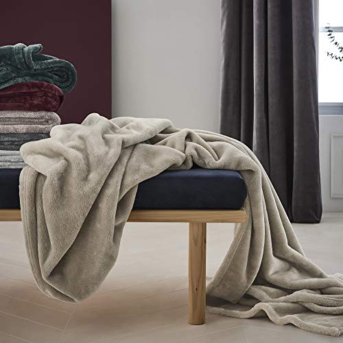 s.Oliver 3040 Tagesdecke 150×200 cm – Flanell Kuscheldecke Taupe, Wohndecke, super weich und flauschig warm